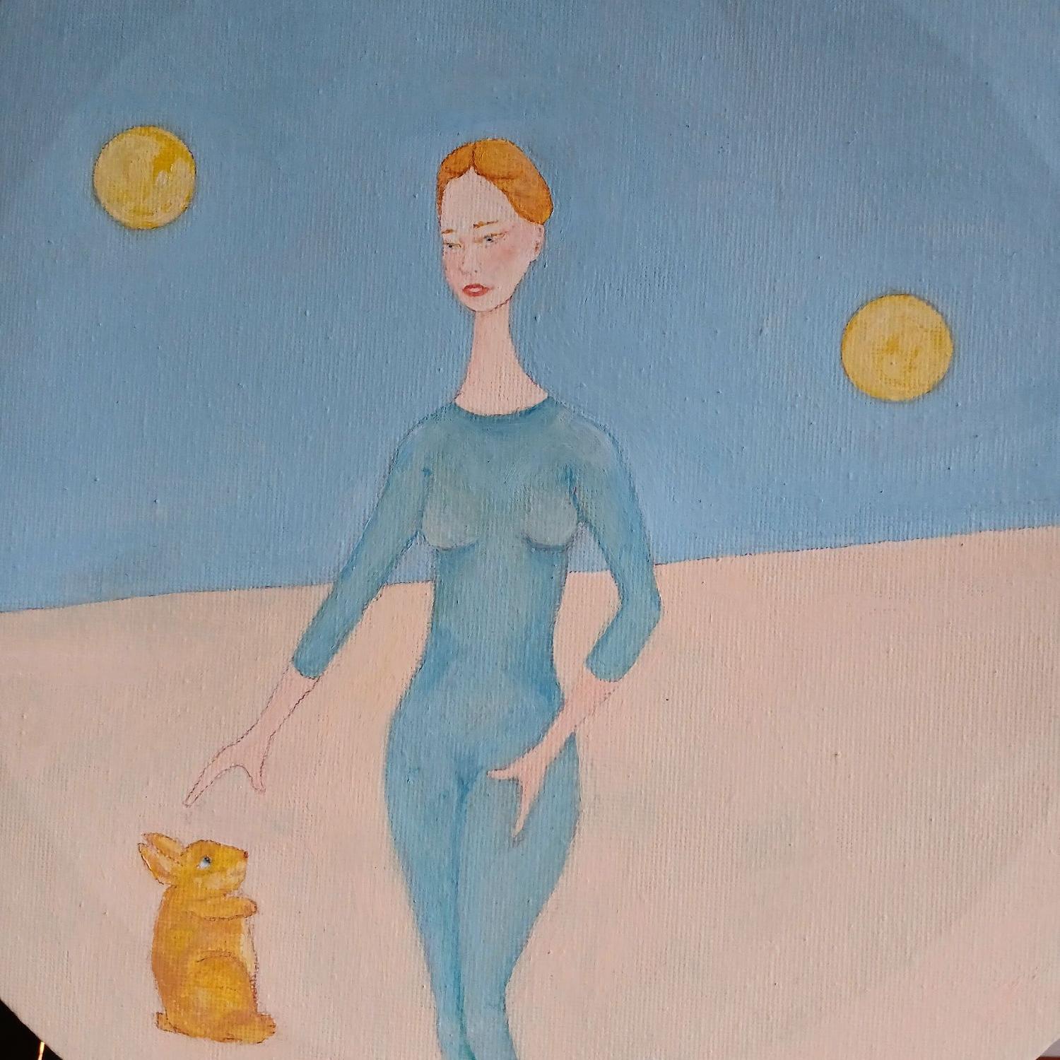 Superior female beeing with her rabbit on Andromeda's galaxy