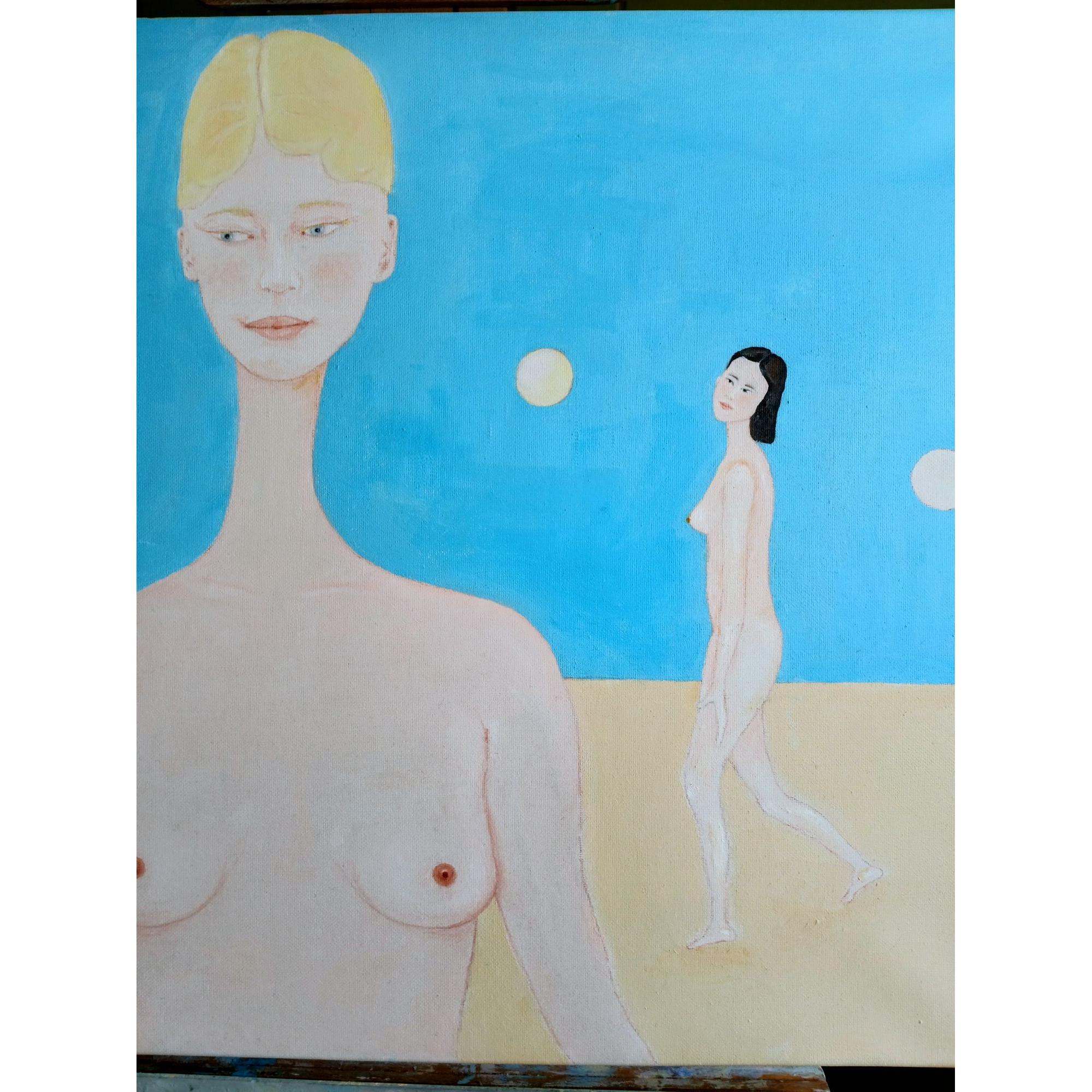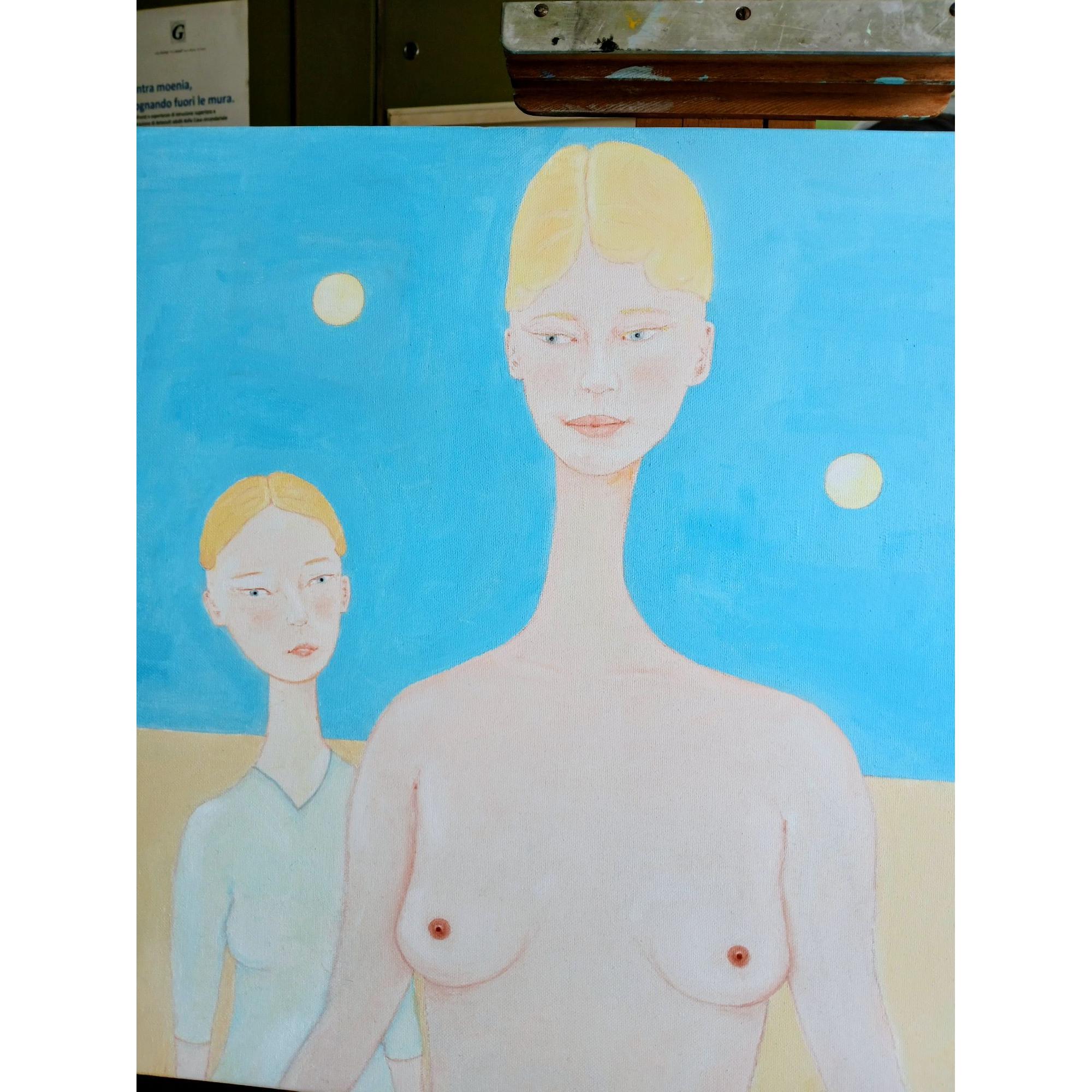 A dark-haired earthly japanese woman meets two female beings on planet A1 in the sky of the Andromeda Galaxy thanks to an entanglement with them; she sees how they are superior, pure, and delicate; but untouchable. Their purity indicates to her the way of life to follow on Earth. The name of eathly woman is Ayu. Ayu traveled through space-time with the mediation of the art, to meet two female beings from Andromeda, a mother and daughter.